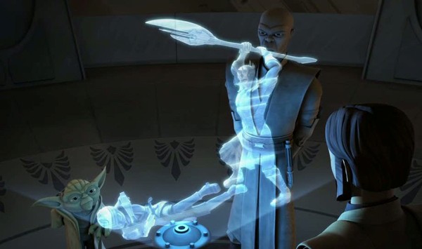 虐殺のホロ記録を見るジェダイ評議会のメンバーたち