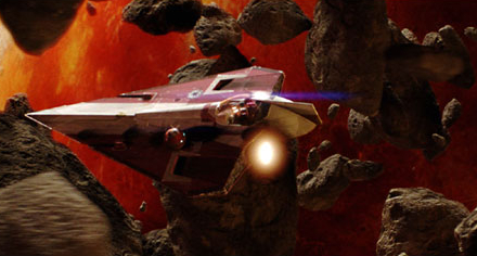 ジオノーシスの小惑星帯でジャンゴ・フェットを追うオビ=ワン・ケノービのデルタ7