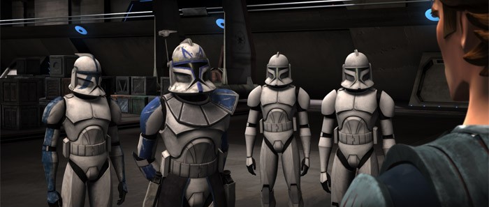 キャド・ベインのフリゲート艦に侵入する作戦についてデナルとレックスに伝えるアナキン・スカイウォーカー