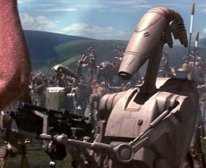 だがその直後に、ガンレイの惑星支配はレジスタンス勢力と直面した。ボンバード・ジェネラル、ジャー・ジャー・ビンクスとタブラー・シール将軍率いるグンガン軍の大部隊が、大草原に集結したのである。OOM-9は3B3-1138を含む迎撃部隊を差し向け、大草原の戦いでグンガン軍と激突したのだった。